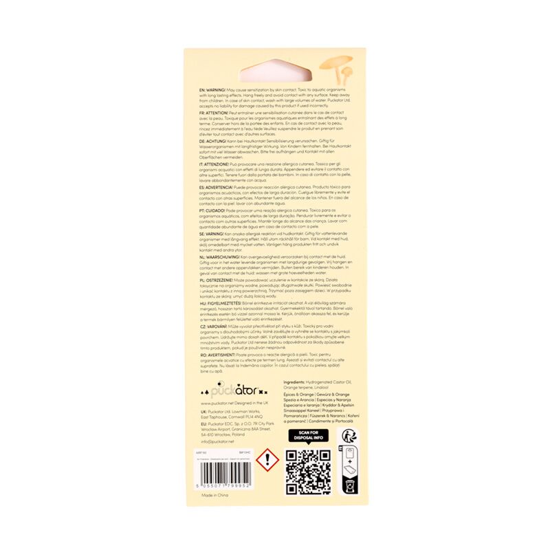 https://www.puckator.es/airf160-ambientador-de-coche-autumn-harvest-otono.htmlAIRF160Ambientador de Coche Autumn Harvest Otoño<p>Ambientador de Coche Autumn Harvest Otoño</p><ul><li><strong>Material:</strong> Cartulina, Polipropileno, Elástico, Papel Absorbente y Fragancia</li><li><strong>Fragancia:</strong> Especias de Otoño</li><li><strong>Información de Seguridad:</strong> Mantener lejos del alcance de los niños. Toda la información sobre seguridad y la fragancia figura en el envase del producto. No lo apoye sobre ninguna superficie, ya que los aceites del ambientador pueden mancharla o dañarla.</li><li><strong>Temporada/Festival/Ocasión: </strong>Halloween</li></ul><p><strong>Información complementaria:</strong></p><ul><li><strong>¿Quieres saber más acerca de los métodos de trabajo de Puckator?</strong> Encuentra todo lo que necesitas saber en la <a href="/advice-centre" target="_blank" title="Puckator España - Guía de Compra">guía de compra del cliente.</a></li></ul></ul>https://www.puckator.es/media/catalog/product/A/I/AIRF160_001_1738848807.jpg0.54instock0.540.5400Puckator000https://www.puckator.es/media/catalog/product/A/I/AIRF160_001_1738848807.jpg158761660117193194091941019411/Ambientadores Para Coche/Temporary Sale - FR/Cosecha de Otoño - Autumn Harvest 2024-06-03T11:48:54+0000