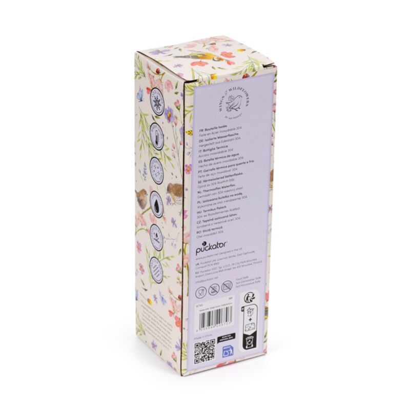 https://www.puckator.es/bot405-botella-termica-de-acero-inoxidable-jan-pashley-wings-wildflowers-500ml.htmlBOT405Botella Térmica de Acero Inoxidable Jan Pashley Wings & Wildflowers 500ml<p>Botella Térmica de Acero Inoxidable Jan Pashley Wings & Wildflowers 500ml</p><ul><li><strong>Material:</strong> Acero Inoxidable, Polipropileno y Silicona</li><li><strong>Apto para la Comida:</strong>Sí</li><li><strong>Apto para Lavavajillas:</strong> No</li><li><strong>Reutilizable:</strong>Sí</li><li><strong>Libre de BPA:</strong>Sí</li><li><strong>Volumen:</strong> 500ml</li><li><li><strong>Base antideslizante de silicona:</strong> Sí</li><strong>Información sobre el Producto:</strong> Apto para bebidas frías y calientes. Mantiene los líquidos fríos hasta 24 horas o calientes hasta 12 horas.</li><li><strong>Información sobre la Licencia:</strong> Este producto cuenta con licencia completa y puede venderse en todo el mundo.</li></ul><p><strong>Información complementaria:</strong></p><ul><li><strong>¿Quieres saber más acerca de los métodos de trabajo de Puckator?</strong> Encuentra todo lo que necesitas saber en la <a href="/advice-centre" target="_blank" title="Puckator España - Guía de Compra">guía de compra del cliente.</a></li></ul></ul><p><img src="{{media url="wysiwyg/Symbols/WARM12.jpg";}}" alt="Warm 12 Hrs Packaging Symbol|Puckator" width="100" height="100"><img src="{{media url="wysiwyg/Symbols/COOL24.jpg";}}" alt="Cool 24 Hrs Packaging Symbol|Puckator" width="100" height="100"></p>https://www.puckator.es/media/catalog/product/B/O/BOT405_001_1776351499.jpg7.95outofstock7.957.9500Puckator000https://www.puckator.es/media/catalog/product/B/O/BOT405_001_1776351499.jpg1662516787174871768418155/Diseños de Jan Pashley/Botellas y Termos/Próximamente en Stock/Natural Floral Collection/Novedades/Vuelve a Stock2025-12-24T09:17:11+0000