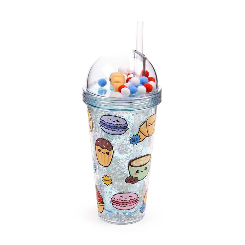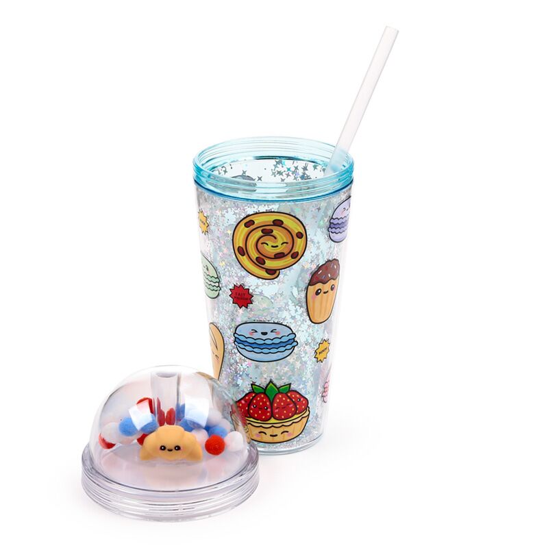 Vaso de Plástico de Doble Pared con Pajita y Adornos Foodiemals Boulangerie
