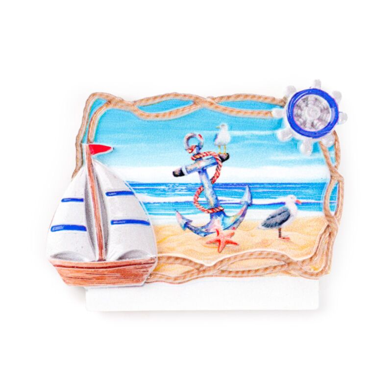 Imán de Souvenir de la Costa con marco de cuerda - Ancla y Faro