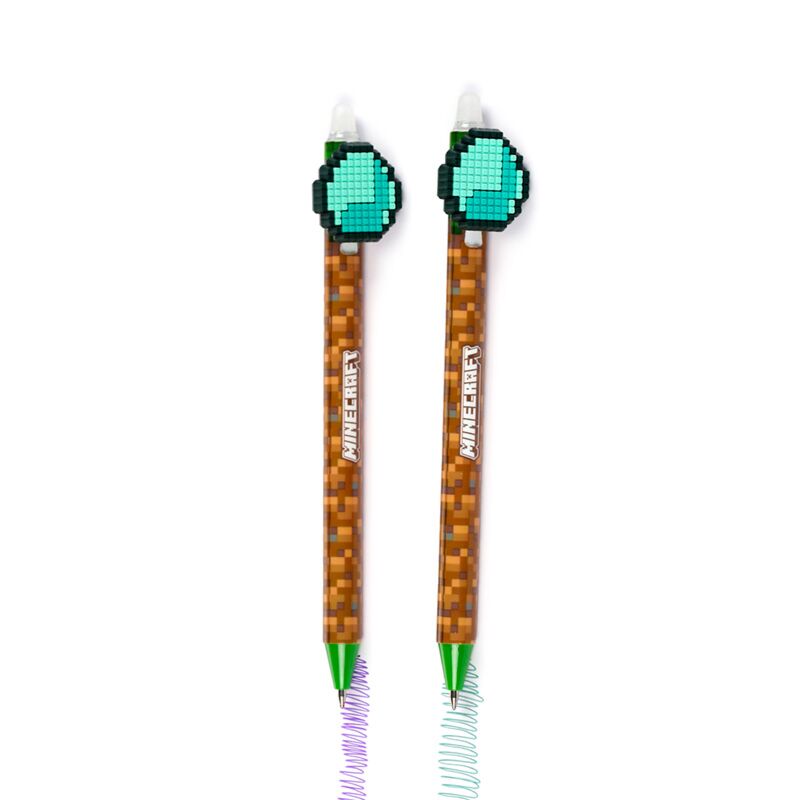 Set de 8 Bolígrafos Borrables con Tope de Silicona Minecraft