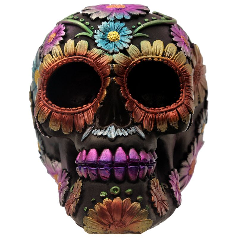 Figura Calavera Calavera Día de los Muertos Floral y Metálica